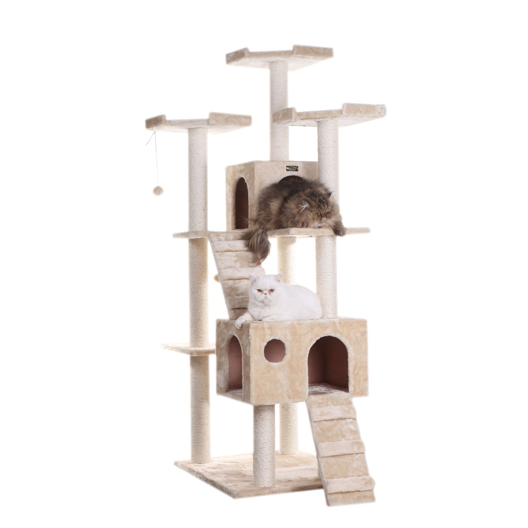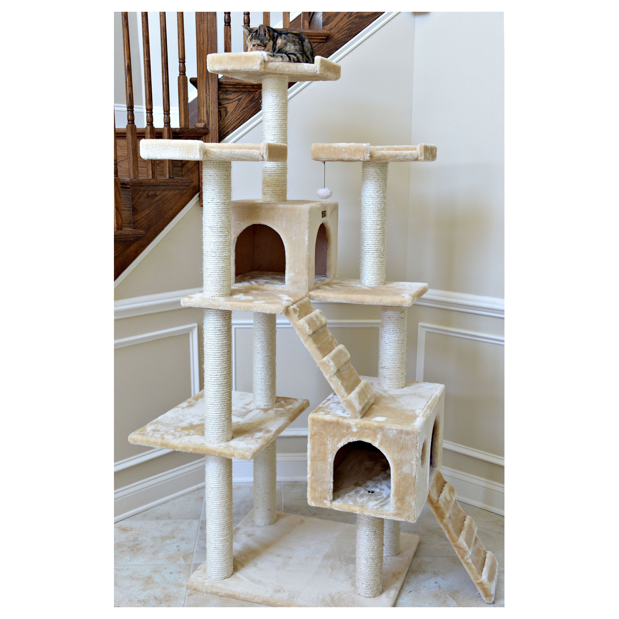 Armarkat 74 In Faux Fur Two Condo Running Ramps Cat Tree Beige Cat Furniture Towers Petsmart