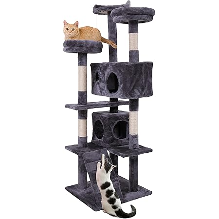 Amazon Com Coziwow 60 H Cat Trees And Towers With Scratching Posts Condos Hammock Resting Perch Indoor Pet Activity Furniture Play House For Kitten Kitty Large Cat Pet Supplies