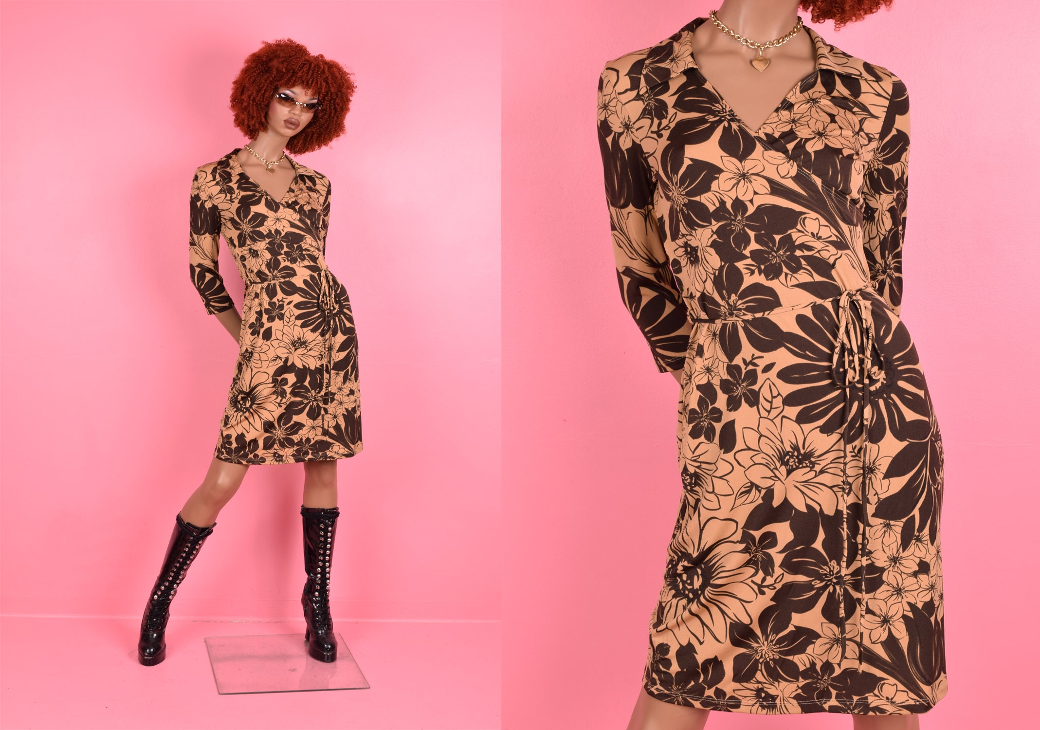 90s 00s Floral Print Faux Wrap Dress Medium 1990s 2000s Etsy